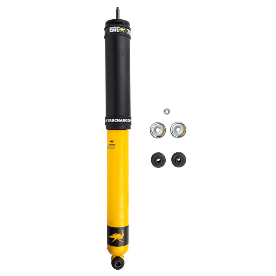 NITROCHARGER PLUS SHOCK ABSORBERDuring the development of Old Man Emu's Nitrocharger Plus shock absorbers, Ride Control Engineers tailor shock absorber valving to work with the different springs in the range, often resulting in multiple shock absorber options for each vehicle.Old Man Emu Nitrocharger Plus is a twin tube design with the outer reserve tube providing protection to the internal components off road. Utilising the latest advances in shock absorber technology, Nitrocharger Sport is the most finely tuned 4x4 shock absorber on the market.FEATURESLARGE BORE 36MM TWIN TUBE DESIGN; Allows greater oil volume for cooling and sustained valving performance and strong 2mm outer tube construction protects the vital internal components from damage.LARGE 20MM HARDENED CHROME PISTON ROD; Strong enough to handle any load or harsh conditions expected from your 4x4.TRIPLE LIP CHECK VALVE OIL SEAL ÔÇô MK2; The latest technology in oil seal design ÔÇô physically larger with quantum improvements in durability, oil and gas retention with much greater resistance to heat so it keeps working under the harshest conditions.TEFLON-IMPREGNATED LOW FRICTION ROD GUIDE; The latest refinement in rod guide design further reduces heat build-up and maintains performance.TEFLON-INFUSED BRONZE ROD GUIDE SLIP RING; A new component that maintains consistent and uniform performance by providing a tight and uniform fit between the piston rod and rod guide.MULTI DEFLECTIVE DISC VALVING SYSTEM; A unique and new valving system that features multiple disc valving control at the base of the shock and on both sides of the piston rod. This allows the OME engineers more valving options for better ride quality and handling control.36MM HIGH FLOW TEFLON-BANDED PISTON; New low friction design has less restrictive oil flow through the piston, reduces heat build-up and aeration of the oil that leads to fade.VEHICLE-SPECIFIC VALVING; OME shock absorbers performance stand head and shoulders over its competitors because many hours of OME engineering valving work have been put into each and every shock absorber to ensure our customers get the best ride and handling their vehicle can have.POLYETHYLENE DIRT SHIELD; Impact-resistant, polyethylene dirt shield provides additional protection from stone chips and off road debris.NITROGEN GAS; Increases the temperature operating range and improves oil flow through the valving, ensuring optimum performance.SUPPLEMENTARY WELDS; For strength and reliability, all mounts have supplementary weldsWHO IS OLD MAN EMU?With an engineering focus for off road comfort and on road handling, today Old Man Emu supplies tailored suspension solutions for over 200 popular 4WD vehicles. Whether it's for work or play, touring or hardcore off road, Old Man Emu has a selection of springs, shocks and associated suspension components that will transform your 4WD's ride, handling and off road capabilities.