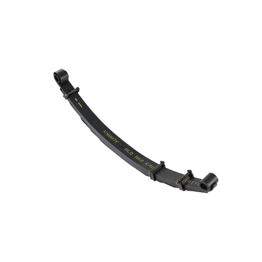 LEAF SPRINGSOld Man Emu leaf springs are engineered to provide optimum ride performance irrespective of the conditions in which they operate.Numerous spring options are available to suit each user's specific needs, allowing you to set your vehicle up for recreational or commercial purposes. A set of Old Man Emu leaf springs, matched to a set of Old Man Emu 4+?4 shock absorbers will deliver vastly improved ride, handling and load carrying capability.