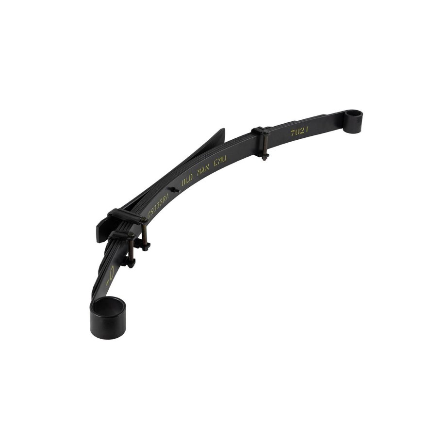 LEAF SPRINGSOld Man Emu leaf springs are engineered to provide optimum ride performance irrespective of the conditions in which they operate.Numerous spring options are available to suit each user's specific needs, allowing you to set your vehicle up for recreational or commercial purposes. A set of Old Man Emu leaf springs, matched to a set of Old Man Emu 4+?4 shock absorbers will deliver vastly improved ride, handling and load carrying capability.