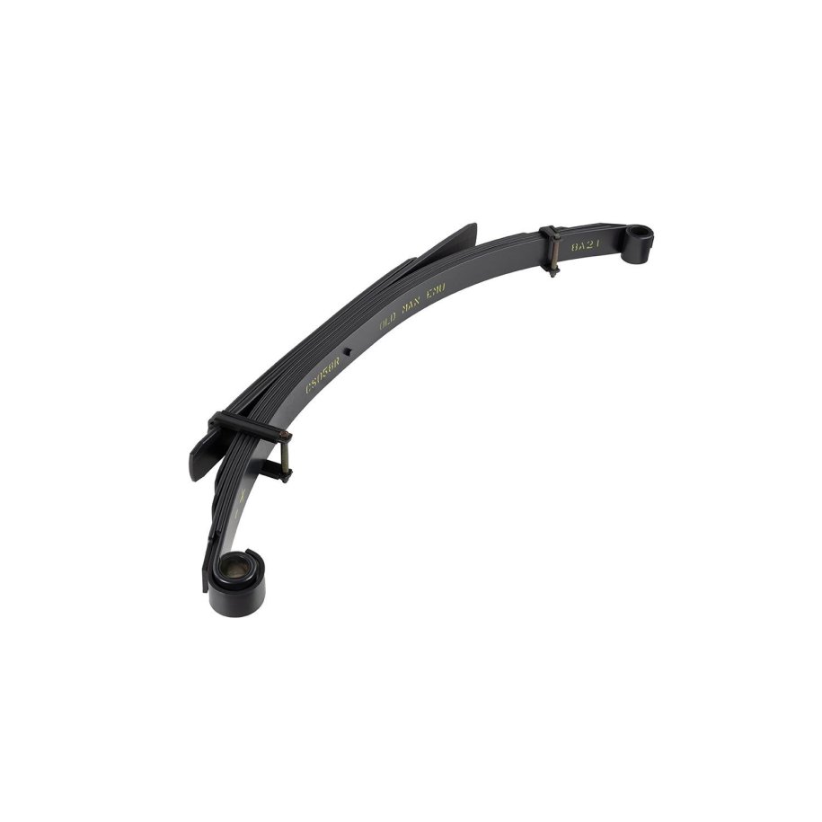 Numerous spring options are available to suit each user's specific needs, allowing you to set your vehicle up for recreational or commercial purposes. A set of Old Man Emu leaf springs, matched to a set of Old Man Emu 4+?4 shock absorbers will deliver vastly improved ride, handling and load carrying capability.