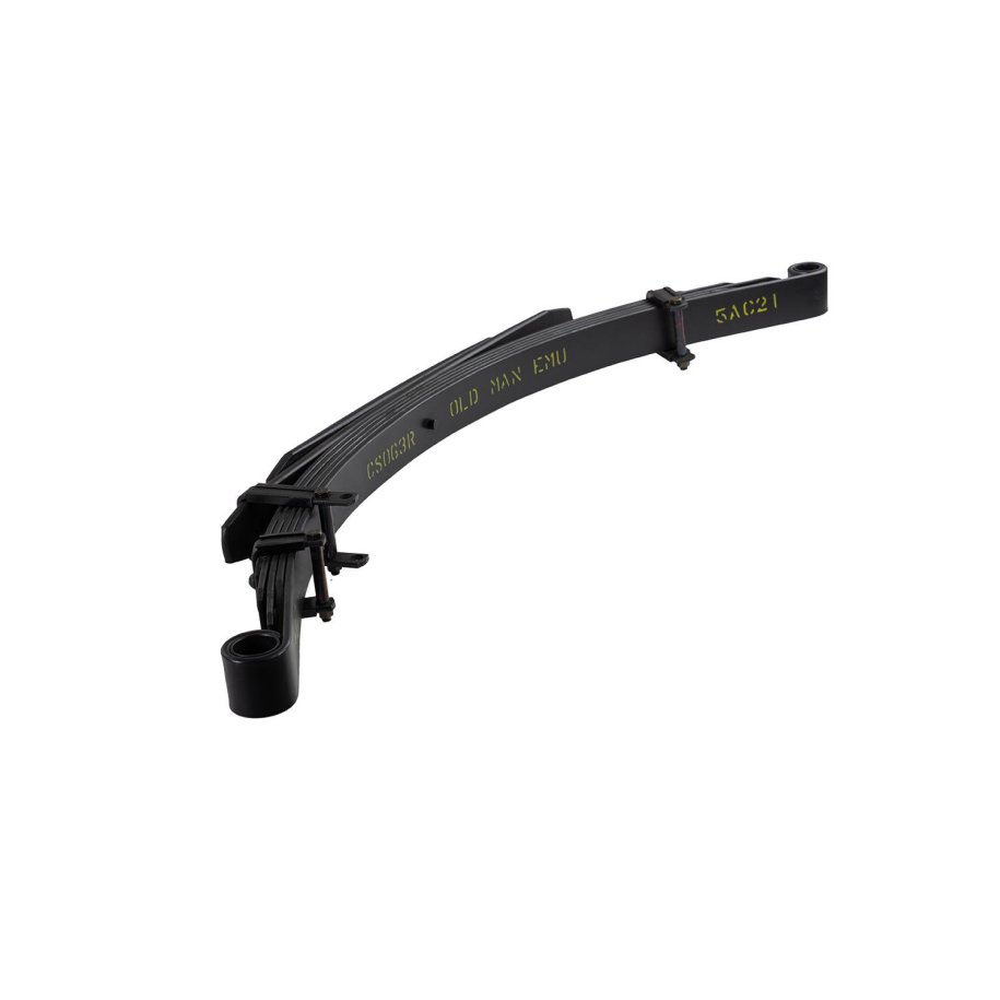 LEAF SPRINGSOld Man Emu leaf springs are engineered to provide optimum ride performance irrespective of the conditions in which they operate.Numerous spring options are available to suit each user's specific needs, allowing you to set your vehicle up for recreational or commercial purposes. A set of Old Man Emu leaf springs, matched to a set of Old Man Emu 4+?4 shock absorbers will deliver vastly improved ride, handling and load carrying capability.