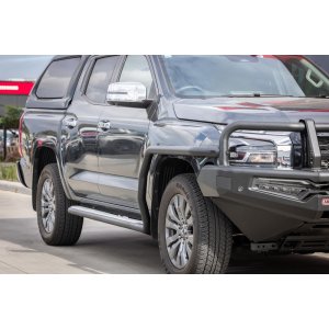 DELUXE SIDE RAILARB's deluxe range of side protection products will provide added protection for your vehicle from obstacles small and large.Superbly engineered bolt-on chassis mounting systems distinguish ARB side protection gear from those commonly fitted to 4WDs. COmpatible with ARB Deluxe Bull Bars. high strength 47.6mm steel tube, mandrel bentbolt-on chassis bracketsbolt-on bull bar steel clamshell style bracketsThis product is a side rail only offering protection to the front quarter panels, there is NO matching ARB side step. The design allows for retention of OE side steps.