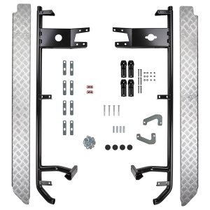 DELUXE SIDE RAIL & STEPDesigned and manufactured to ensure compatibility with side airbags and modern vehicle safety systems, ARB's deluxe range of side protection products will provide added protection for your vehicle from obstacles small and large, whilst the steps provide easier access to your vehicle.Superbly engineered bolt-on chassis mounting systems distinguish ARB side protection gear from the standard steps commonly fitted to 4WDs. Manufactured for fitting to Deluxe bull bars:high strength 47.6mm steel tube, mandrel bentbolt-on chassis bracketsbolt-on bar clamp, three-bolt steel clamshell typealloy tread plateThis side step and side rail is a complete set.