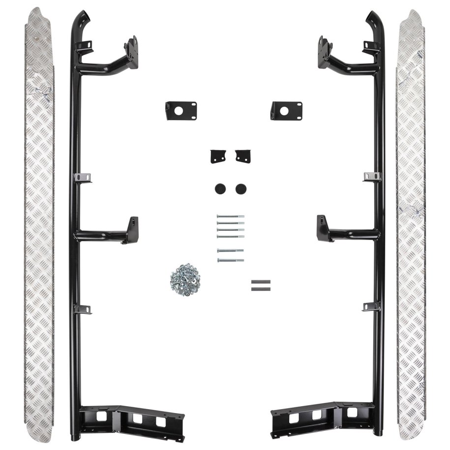 DELUXE SIDE STEP SECTIONThe superbly engineered Deluxe chassis mounting systems distinguish ARB side protection gear from the standard steps commonly fitted to 4WDs.steel tubing, high strength 47.6mm mandrel bentbolt-on chassis bracketslaser profile aluminium tread platesThe side step section is one part of a two part system. The side step suits the matching side step return or front side rail.Note: this side step section comes complete with the side step tread plates.