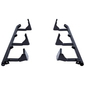 SUMMIT SIDE RAILThe Summit side protection range encompasses the very best in design and vehicle protection. Built for four wheel drives, Summit side rails & protection steps defend your vehicle's quarter panels, doors and sills from expensive damage that can be encountered when off road.\tall new engineered attachment system, connects the side rail to the bull bar securely\ta tough nylon cover sleeve provides a modern integrated look\tlarger steel tubing, manufactured from high strength 60.3mm tube\textruded & anodised aluminium tread plate, laser cut profileThe side rail section is one part of a two part system. The side rail suits the matching side step.Note: the side rail comes complete with the side step tread plates.