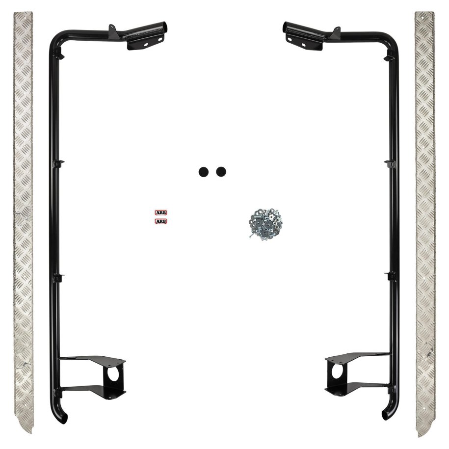DELUXE SIDE STEP Designed and manufactured to ensure compatibility with side airbags and modern vehicle safety systems, ARB's deluxe range of side protection products will provide added protection for your vehicle from obstacles small and large, whilst the steps provide easier access to your vehicle.Superbly engineered bolt-on chassis mounting systems distinguish ARB side protection gear from the standard steps commonly fitted to 4WDs. high strength 47.6mm steel tube, mandrel bent bolt-on chassis brackets alloy tread plate This side step is supplied as a complete set.