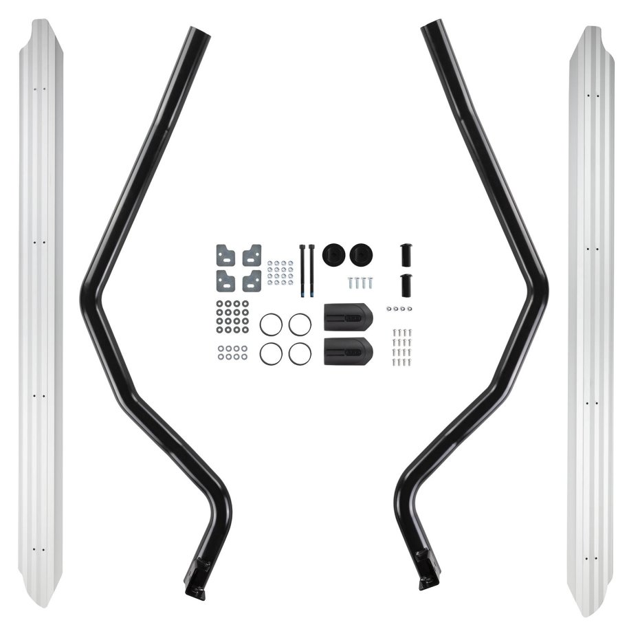 SUMMIT SIDE RAILThe Summit side protection range encompasses the very best in design and vehicle protection. Built for four wheel drives, Summit side rails & protection steps defend your vehicle's quarter panels, doors and sills from expensive damage that can be encountered when off road.all new engineered attachment system, connects the side rail to the bull bar securelya tough nylon cover sleeve provides a modern integrated looklarger steel tubing, manufactured from high strength 60.3mm tubeextruded & anodised aluminium tread plate, laser cut profileThe side rail section is one part of a two part system. The side rail suits the matching side step.Note: the side rail comes complete with the side step