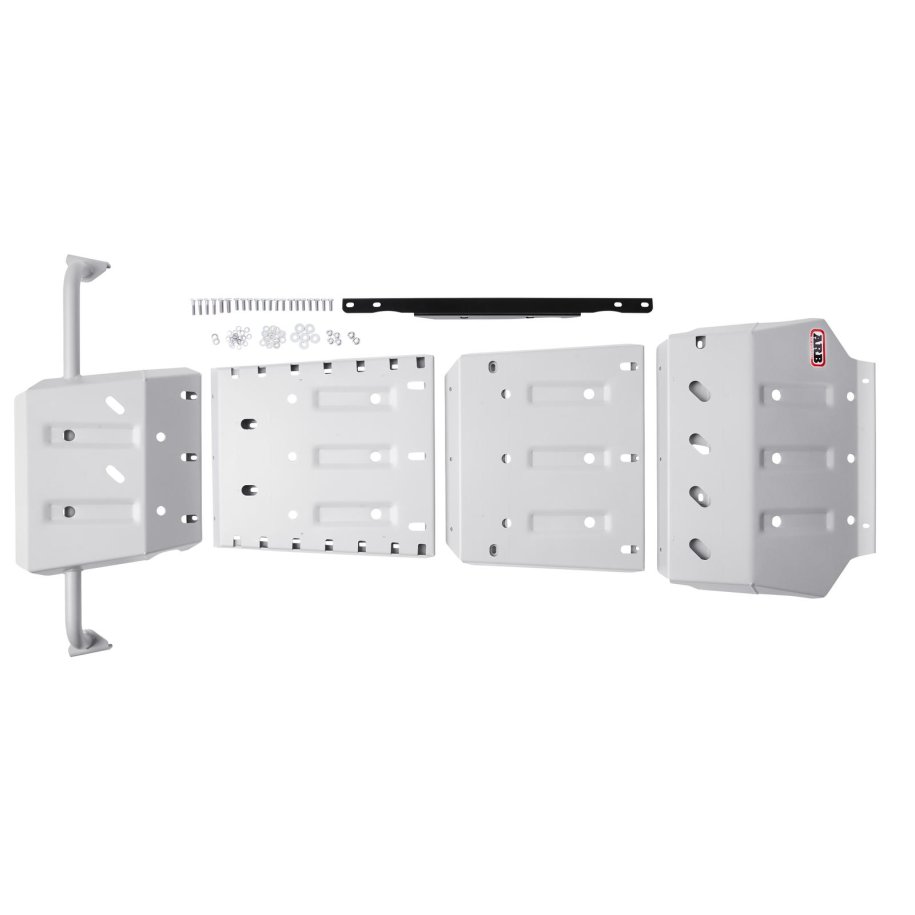 ARB UNDER VEHICLE PROTECTIONThe underbody of your 4WD is one of the areas most susceptible to damage when travelling off road. Whilst most factory protection is sufficient for protecting your vehicle from stone damage, a more robust solution is required to increase protection from rocks, stumps and ruts encountered in more challenging terrain.ARB offers vehicle specific Under Vehicle Protection sets to minimise the risk of damage to most vital components of your vehicle drivetrain.KEY FEATURESARB's under vehicle protection systems are specifically designed for each vehicle and engineered to provide a shield for vulnerable under body components such as the steering, sump, transmission and transfer case.Pressed and folded 3mm laser cut steel provides more strength than folded steel alone and allows optimum strength to weight ratioSecurely bolted to the vehicle's chassis providing outstanding structural integrityAll steel components are zinc plated and powder coated in a silver textured finishRecessed mounting bolts are protected and easy to remove for vehicle servicing.