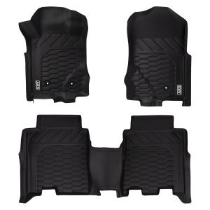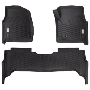 ARB FLOOR MATS Designed by ARB with an engineered 2-stage floor protection system that captures dirt, debris and water. The designated catchment areas in the floor mat is designed to capture any foreign material which provides complete protection to your vehicles floor. The second stage provides drainage channels which directs moisture to an additional catchment zone thereby preventing slippage while driving.Features & Benefits:• Vehicle and model specific• 100% waterproof and simple to clean• 3D moulded to each vehicle for a perfect fit every time• Made from thermoplastic elastomers that provide all the benefits of rubber without the odour• Two-stage design for secure foot placement, reduced spillage and complete protection• Unique surface texture designed and moulded for a secure grip over the entire surface• Seamless edging to integrate with vehicle's interior• OEM-compatible safety retention clips• Engineered debris channels that disburse material towards catchment zones• Includes one driver mat, one passenger mat and a full single rear mat CLEANINGARB Floor Mats are 100% waterproof and are designed to capture all kinds of debris from sand and dirt to mud and snow. The moulded deep dish design can be easily cleaned. Simply wipe or hose off any debris, dry and then place back in the vehicle ready for the next adventure.