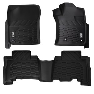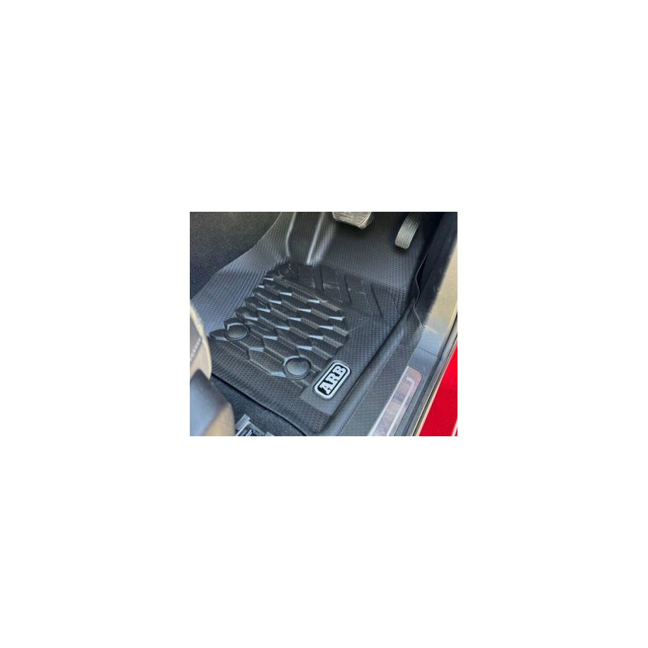 ARB FLOOR MATS Designed by ARB with an engineered 2-stage floor protection system that captures dirt, debris and water. The designated catchment areas in the floor mat is designed to capture any foreign material which provides complete protection to your vehicles floor. The second stage provides drainage channels which directs moisture to an additional catchment zone thereby preventing slippage while driving.Features & Benefits:• Vehicle and model specific• 100% waterproof and simple to clean• 3D moulded to each vehicle for a perfect fit every time• Made from thermoplastic elastomers that provide all the benefits of rubber without the odour• Two-stage design for secure foot placement, reduced spillage and complete protection• Unique surface texture designed and moulded for a secure grip over the entire surface• Seamless edging to integrate with vehicle's interior• OEM-compatible safety retention clips• Engineered debris channels that disburse material towards catchment zones• Includes one driver mat, one passenger mat and a full single rear mat CLEANINGARB Floor Mats are 100% waterproof and are designed to capture all kinds of debris from sand and dirt to mud and snow. The moulded deep dish design can be easily cleaned. Simply wipe or hose off any debris, dry and then place back in the vehicle ready for the next adventure.