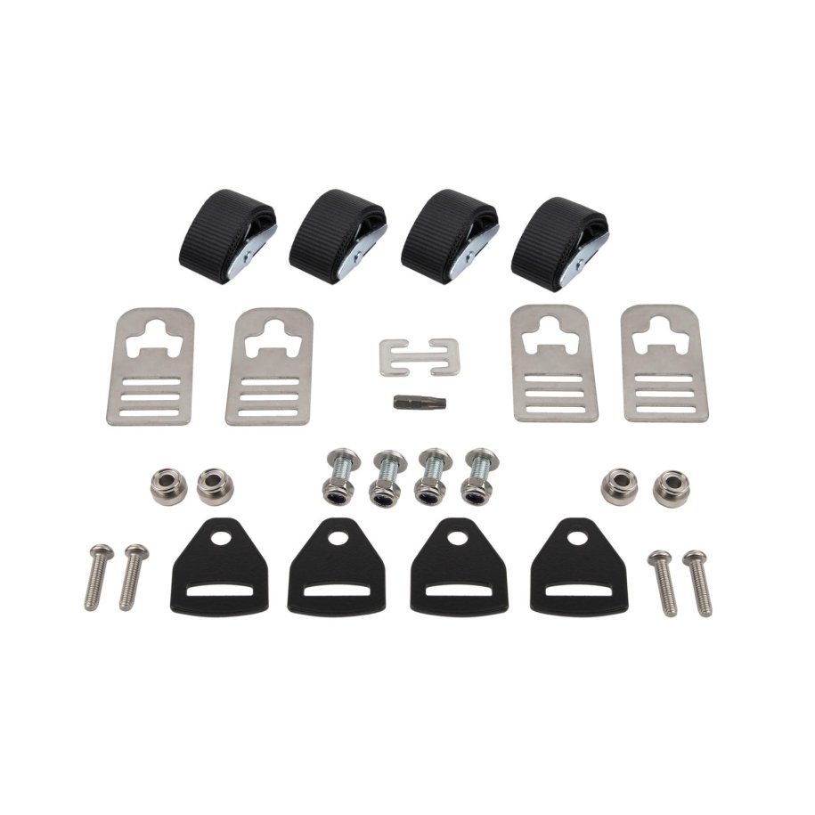 For semi-permanent or temporary securing of the Elements Fridge Freezer, a new tie down system has been developed. The system incorporates unique replacement fridge handle fasteners to accept the stainless steel strap brackets that also double up as a convenient bottle opener. Lower brackets can be directly mounted to provisions on the Elements Fridge Slide or to any other hard surface. Another handy addition is the power cable retention buckle that keeps cords away from moving parts to avoid damage.