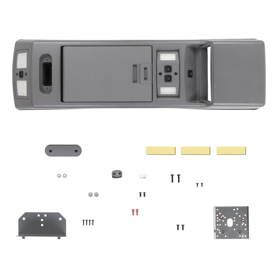 ROOF CONSOLESThe \"4WD Interiors\" Roof Console was awarded 4x4 Australia Magazines \"Best 4x4 Aftermarket Product Under $900\" for the year 2000 and pays testimony to the amount of design work, features and benefits this Console exhibits. \"4WD Interiors\" Roof Consoles: Made to look a part of the vehicle-not apart from it! FeaturesFront Interior/Reading LightsWhen doors are shut switches operate lights independently as reading lights. When doors are opened both lights operate as interior lightsLined Storage Locker BoxLined storage locker box stops contents stored inside from rattling and possible damage against sides of locker box.Microphone Cable HolderMicrophone cable holder is supplied to keep radio cable neat and tidy and up out of the drivers view.DIN (Standard Size) Radio InsertDIN size radio surround/storage tray is incorporated in console.Optional Inserts For Smaller RadiosInserts for smaller radios are available (order with console).Bluetooth Speaker HolesBluetooth speaker holes are incorporated in the front of the console allowing clear speaking and hearing.