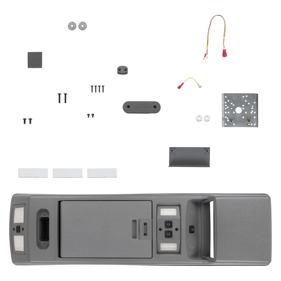 ROOF CONSOLESThe \"4WD Interiors\" Roof Console was awarded 4x4 Australia Magazines \"Best 4x4 Aftermarket Product Under $900\" for the year 2000 and pays testimony to the amount of design work, features and benefits this Console exhibits. \"4WD Interiors\" Roof Consoles: Made to look a part of the vehicle-not apart from it! FeaturesFront Interior/Reading LightsWhen doors are shut switches operate lights independently as reading lights. When doors are opened both lights operate as interior lightsLined Storage Locker BoxLined storage locker box stops contents stored inside from rattling and possible damage against sides of locker box.Microphone Cable HolderMicrophone cable holder is supplied to keep radio cable neat and tidy and up out of the drivers view.DIN (Standard Size) Radio InsertDIN size radio surround/storage tray is incorporated in console.Optional Inserts For Smaller RadiosInserts for smaller radios are available (order with console).Bluetooth Speaker HolesBluetooth speaker holes are incorporated in the front of the console allowing clear speaking and hearing.
