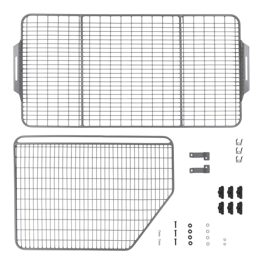 REAR RACK AND DIVIDERThe Rear Rack & Divider is designed to further increase the usable storage capacity of an \"Outback\" Roller Drawer equiped vehicle. Combined with an \"Outback\" Half Barrier, the rack and divider also allows other cargo to be safely carried adjacent to the Fridge \/ Roller Floor and above it without closing off the necessary ventilation. Maximum 15kgs storage on rack when mounted correctly.FeaturesStainless Steel Fixing ClampsOur purpose designed 'Stainless Steel Fixing Clamps' with protective rubber covering are used to fasten Divider to Roller Drawer Floor and steel framework below.Mesh & Bar ClampsOur purpose designed 'Mesh & Bar Clamps' moulded in reinforced nylon are used to clamp R