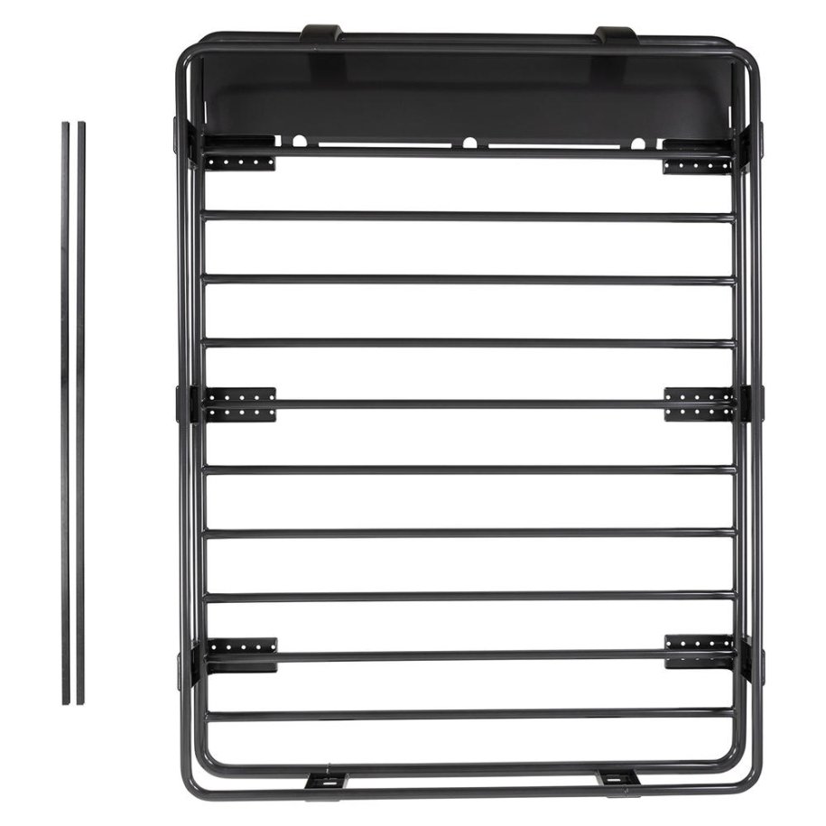- Steel design: Evenly spaced crossbars support the load, which is rated to carry up to 150kg (fully welded steel mesh floor models avaiable). Note: refer to vehicle roof rating speciifcations for allowable and applicable load rating.