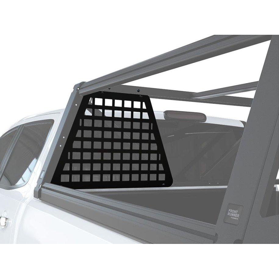 Securely bolts to the Pro Bed System, behind your vehicle's cab. Easily access your adventure gear and additional supplies when strapped to the Pro Bed Rack Headache Molle Panel. Made of high-strength steel and sealed in the same durable black powder coating as the Front Runner Pro Bed System.