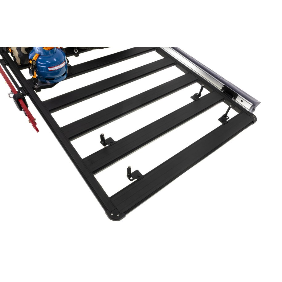 Plus, unlike traditional roof rack channels, the BASE Rack dovetail extrusion won't collect dust and debris. Each BASE accessory or fixture attaches to the rack with a simple clamp mount, including larger hardware such as Hi-Lift Jack mounts, rollers, recovery boards and even a BASE Rack custom light bar.
