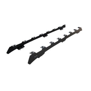 Plus, unlike traditional roof rack channels, the BASE Rack dovetail extrusion won't collect dust and debris. Each BASE accessory or fixture attaches to the rack with a simple clamp mount, including larger hardware such as Hi-Lift Jack mounts, rollers, recovery boards and even a BASE Rack custom light bar.