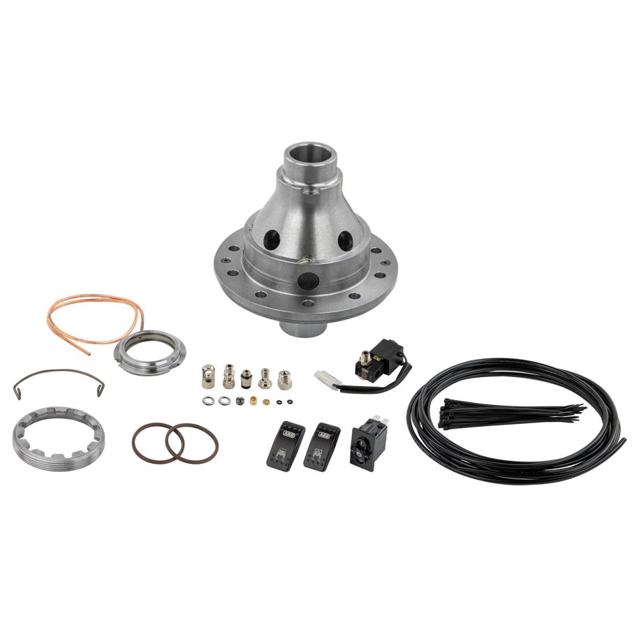 ARB AIR LOCKERAn ARB Air Locker ensures your 4WD just keeps going, no matter the incline, no matter the conditions. You won't lose momentum ÔÇô not even for a second. • Provides the confidence to drive more difficult 4WD tracks• Facilitates controlled descent• Air compressor can be used for tyre inflation• Manufactured in Australia to Australian conditions• Race proven technology• Fully supported for parts and service globally• Improved traction results in reduced track degradation• Less chance of panel and mechanical damage• Great for competition use Just one push of a button and you're back on track! Extra drive instantaneously. An ARB Air Locker solves the problem of \"drive\" being directed to a wheel that is off the ground or slipping. It replaces the factory differential centre, and when engaged, positively locks the front or rear differential providing equal drive to opposing wheels. By directing the drive to where it's needed, you get vastly improved traction allowing challenging terrain to be approached with control and confidence. Note: Compatible with LINX ARB designs and manufactures Air Lockers in-house, using state-of-the-art machinery with a large group of highly skilled and specialised engineers. Each individual piece is carefully constructed to exact precision and each locker is extensively tested to ensure you can trust an ARB Air Locker in the harshest off road environments. Off road Racing ARB Air Lockers continue to dominate the world's toughest off road racing events. In recent years the ARB Air Locker has become the official locker of King of the Hammers and Ultra4 in the USA. Because of these extreme off road racing events (some of the toughest courses in the world), ARB engineers have been driven to continue to develop and test the Air Locker to ensure it can stand up to these grueling conditions and to make the best locker in the world even better! Why Front Lockers?A rear locker will provide your 4WD with significantly improved off road capability and allow challenging terrain to be approached in a far more controlled manner. The addition of a front locker will take your 4WD to the next level, allowing you to get the absolute best out of your vehicle. Traversing steep, rocky terrain can be punishing on vehicles and can actually be quite dangerous, particularly if the track surface is wet and slippery. Continual wheel slippage inevitably results in the driver needing to apply more acceleration to maintain forward momentum, which can make the vehicle's stability unpredictable as the wheels scramble for traction. These scenarios also place a great deal of strain on the vehicle's drivetrain and can frequently lead to failures of mechanical components such as CV joints and axles. A locked rear differential will vastly improve the situation, delivering equal drive to both rear wheels. But in particularly challenging situations, a loss of traction in the front can still be experienced. Picture a steep, rutted hill with large rock ledges and the vehicle's front wheels scrambling to climb over. This scenario can lead to rollovers and drivetrain breakages as your 4WD struggles for traction. Furthermore, the front diffs and overall drivetrain architecture on some vehicles are weaker than the rear, which just exacerbates the situation. Locked front and rear differentials in this terrain are the absolute pinnacle in terms of off road capability and safety. They minimise the strain on the vehicle and prevent degradation of the track surface. Many 4WDs come with rear lockers as standard but their ability to lock quickly and stay engaged varies enormously. ARB Air Lockers activate in a split second and remain 100% locked until the driver deactivates them. It's this rapid engagement and overall strength that makes them so well suited to the front of vehicles. This is due to the fact that when engaged, a front locker will adversely affect steering when trying to navigate a sharp turn. It's why very few vehicle manufacturers offer a front locker. With an Air Locker, this isn't a problem as the driver simply deactivates the locker when necessary. There are a whole range of scenarios where front and rear lockers will mean the difference between driving through an obstacle or having to be winched or snatched over it. Rock, mud, sand and snow, uphill and downhillÔÇ? Air Lockers will become your best off road friend. Once you've experienced this improvement in your vehicle's capability, you'll never want to be without them. Air Locker vs Electronic Locker ARB's Air Locker has many advantages over conventional electronic lockers. Electronic lockers can only be engaged at speeds up to 8-10km/h. That means you have to slow or even stop to engage them ÔÇô and even then, activation takes time. Imagine you're halfway up a hill and need to lock the differential. With an electronic locker you have to stop, activate and wait, which compromises your ability to get going again because momentum has been lost. But with an ARB Air Locker, a flick of the switch gives instant lock at any moment and its super strong design allows activation at any speed. Many modern day vehicles come fitted with a rear electronic locker. But that's only doing half the job. What about the front axle? An Air Locker fitted to the front axle provides the total package. With an ARB Air Locker, you get:• More drive• Instantaneous action• Engagement at any speed• Greater control• Extra strength There really is no other option. SUITABLE FOR• All off road terrain• Recreational and serious 4WDers• Towing caravans and camper trailers• Towing boats• Farmers• Military applications• Off road racingFORGED GEARS & TWO PIECE DESIGNForged Gears & Two Piece DesignAll models include a 2-piece nodular steel housing for rigidity and exacting tolerances, housing four forged and hardened spider gears to handle extreme axle loads. ARB's patented ÔÇ?timed gear' design