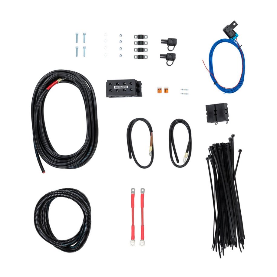 BCDC WIRING KIT - REAR INSTALL 25AInstalling a BCDC is easier than ever with REDARC's new range of BCDC Wiring Kits, designed to connect a REDARCBCDC Battery Charger to the auxiliary and start battery in your vehicle.Each kit contains the key items required to perform a new BCDC installation including pre-crimped, cut to length cables,fuses, fuse holders and connectors.With a kit to suit most installation types, these universal kits are available in 6 different configurations depending on a mixof the auxiliary battery's location and maximum current rating of the charger.Suitable for DIY installers or to streamline trade installations,the BCDC Wiring Kits take the guess work out of BCDCinstallations.