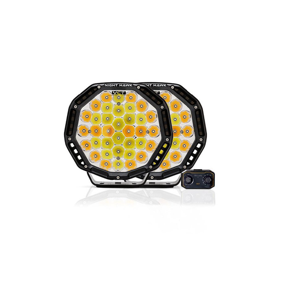 NIGHT HAWK VARIABLE COLOUR TEMPERATURE 9ÔÇ? KITThe Variable Colour Temperature (VCT) Driving light kit is designed to giveyou enhanced visual clarity in any environment. This innovative LED drivinglight kit comes ready for installation with a dual-dial backlit controllerallowing user control of the brightness and colour temperature output of thelights.Take control of your driving lights, and create the vision that works for you. The Night Hawk VCT's give youthe ability to set your preferred brightness and colour, then adjust to suit the environment or terraintravelled.
