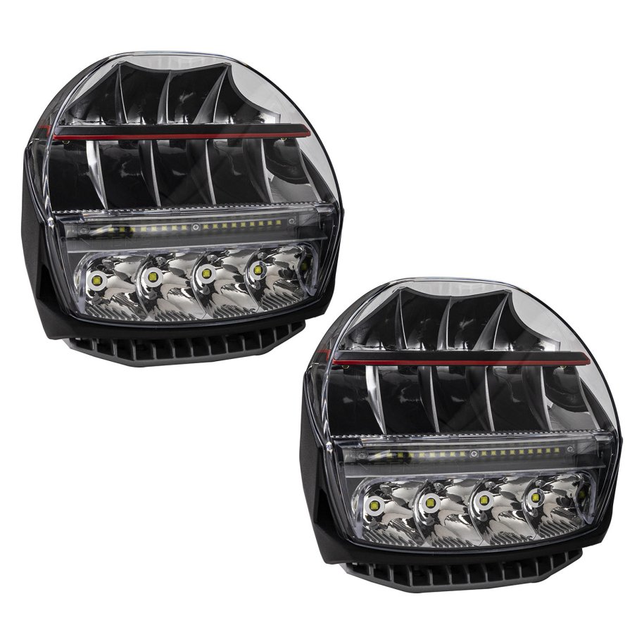 A unique 4-optic design (Super Spot, Spot, Flood and Midrange) is employed to provide virtually an unlimited choice of light beams to suit any road condition. The Super Spot and Spot optics, based on free-form reflector technology, produce an even spot beam for extended distance illumination. The Flood optic has a specially designed lens to maximise the light spread for excellent foreground visibility. The Midrange optics employ a conventional parabolic reflector to illuminate the midrange area. Furthermore, the beam pattern of each of the two lights can be independently adjusted so you could run, for example, one focused on spot and one focused on flood.