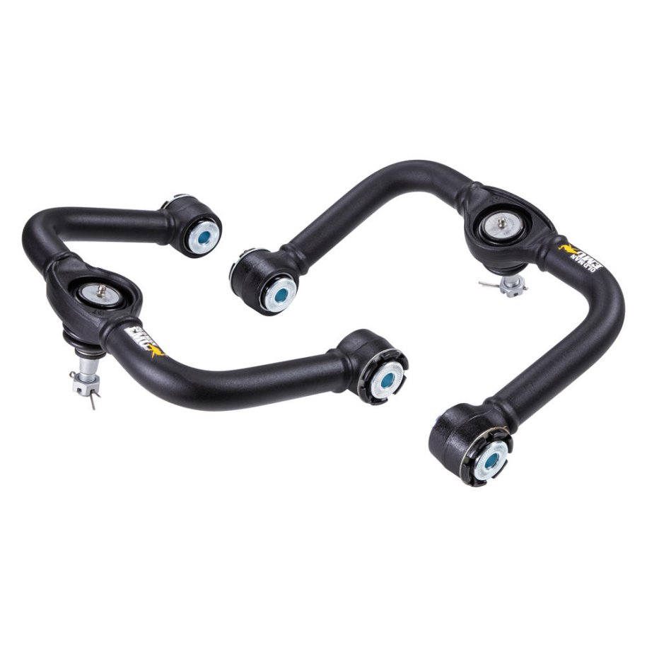 Upper Control ArmsAvailable for a range of popular 4WDs to ensure correct alignment of the front suspension and cater for the geometry change when an IFS vehicle is fitted and lifted with a suspension kit, Old Man Emu Front Upper Control arms have been engineered for use with Old Man Emu Suspension & GVM upgrades and include a forged ball joint housing, free pivoting grease and maintenance-free GIIRO bushings.When an Independent Front Suspension (IFS) vehicle is fitted with a suspension lift, the caster and camber can be pushed outside the factory specifications. IFS vehicles generally have a few degrees of adjustment in their camber and caster from the factory.