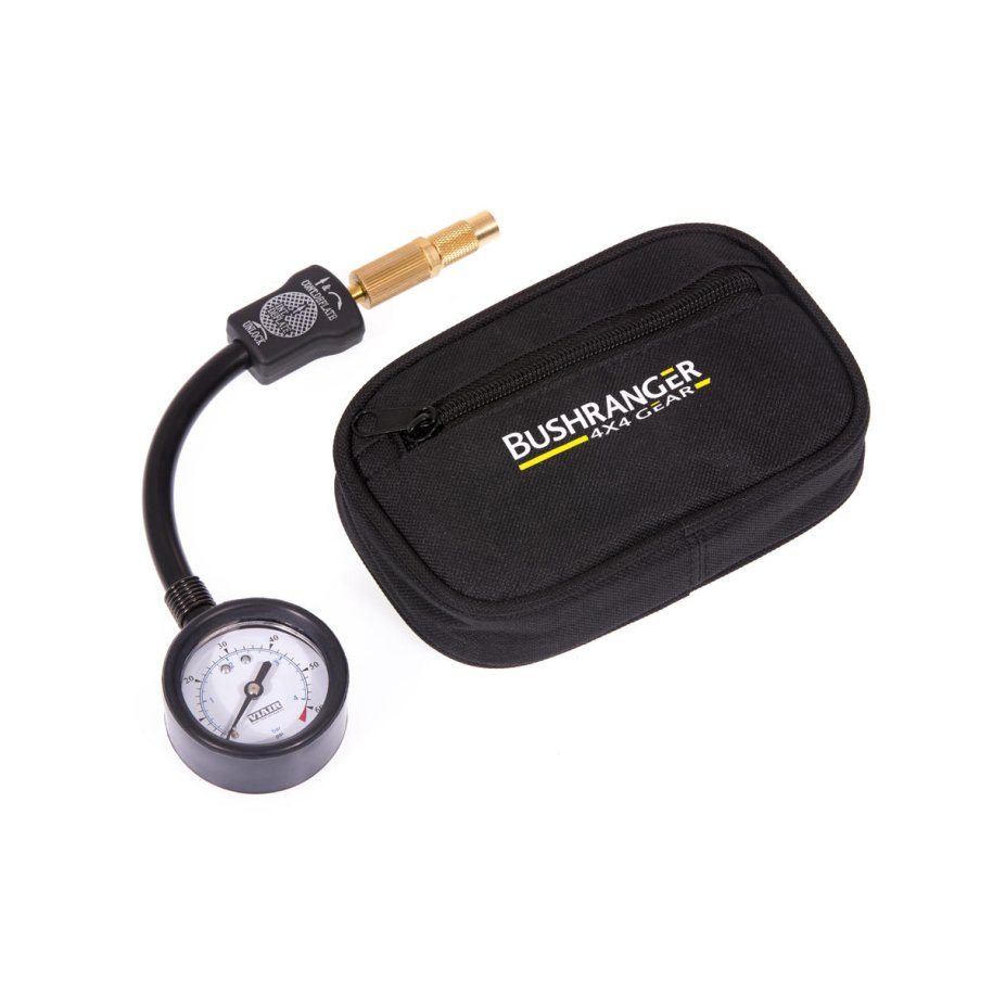 The Bushranger® Tyre Gauge designed to read tyre pressures accurately, and control deflations on your vehicle tyres. Ideal tool for off-roading. Deflation Togged continuous & intermittent, Easy to read dial with carrying pouch.