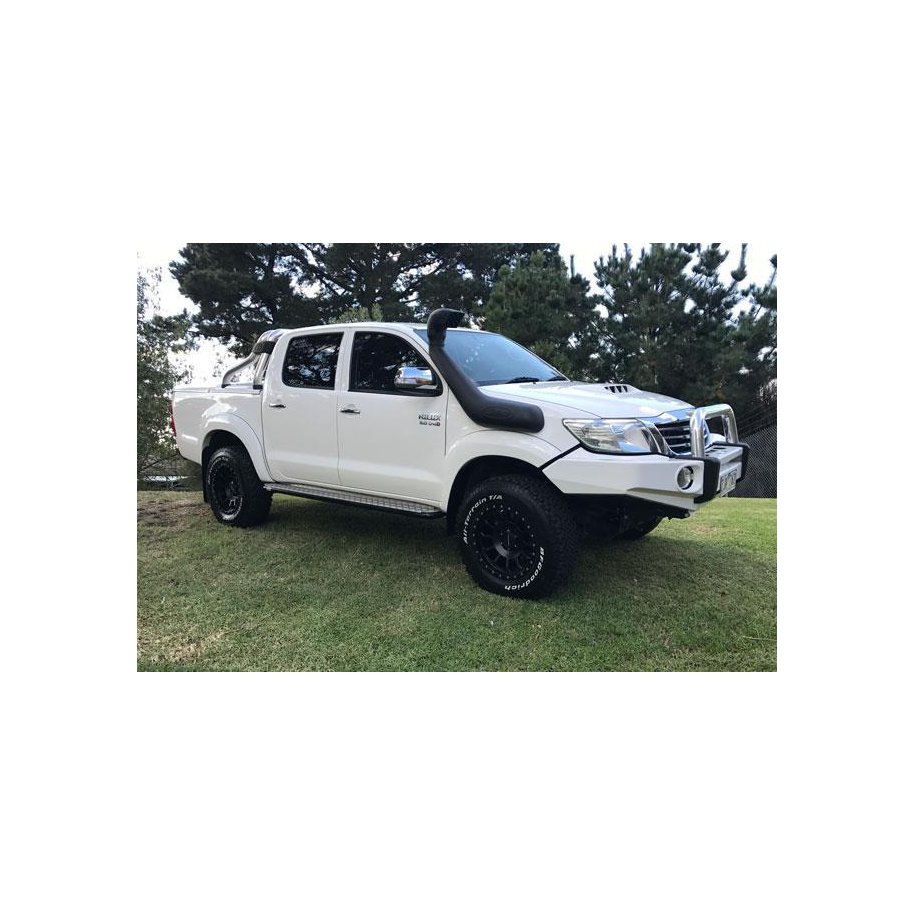 SAFARI ARMAX SNORKELSafari ARMAX Snorkels are a performance orientated design, tested on a custom built flow bench to flow 25% to 70% more air than the stock air cleaner housing flows from the vehicle manufacturer, whilst still providing a watertight raised air intake.This ensures that if the vehicle owner wishes to increase their vehicle's engine performance (utilising Engine Management, Exhausts, upgraded Intercoolers etc.), the Safari ARMAXÔäó Snorkel will provide the necessary airflow required. This is the only product of its type in the world.SS122HP Safari ARMAX Snorkel suitable for 25 Series Toyota Hilux 4x4 Features-? Up to 50% increased airflow for your 25 Series Hilux engine-? Safari's rounded style Air Ram; however with minimum 4ÔÇ? neck and an optimised air flow, low restriction grill-? Australian designed, moulded and manufactured-? Design and flow tested by our in house engineers for maximum performance-? Development in conjunction with other soon to be released ARMAXÔäó performance enhancement products.-? Raised air intake to prevent your engine from ingesting harmful elements-? Water separating air ram design to remove water from the air stream-? Durable and UV stable snorkel and air ram for added strength-? Comprehensive Snorkel fitting guide suitable for Toyota Land Cruiser 4WD with an accurate template for installation.The SS122HP Safari Snorkel suitable for Toyota 25 Series Hilux 4x4 is designed to deliver up to 50% more air than the OE air intake for Toyota Hilux engines.With the popularity of performance upgrades using engine management and larger exhausts, Safari 4x4 Engineering took the decision to design a snorkel system that not only raised the air intake to prevent ingesting harmful elements to the vehicles air cleaner, but also would be able to deliver the necessary volume of air into the engine, therefore maximising the performance enhancements potential.Huge air flow is but one aspect of the ultimate in snorkel design suitable for Toyota Hilux. The Safari ARMAX snorkel air ram is designed to perform two very important roles. The most obvious is to funnel cool clean air into the snorkel body - but just as importantly, the Safari ARMAX air ram acts as a highly efficient water separator to remove rain water from the incoming air stream - thus ensuring safe engine operation through even the most torrential tropical storms.