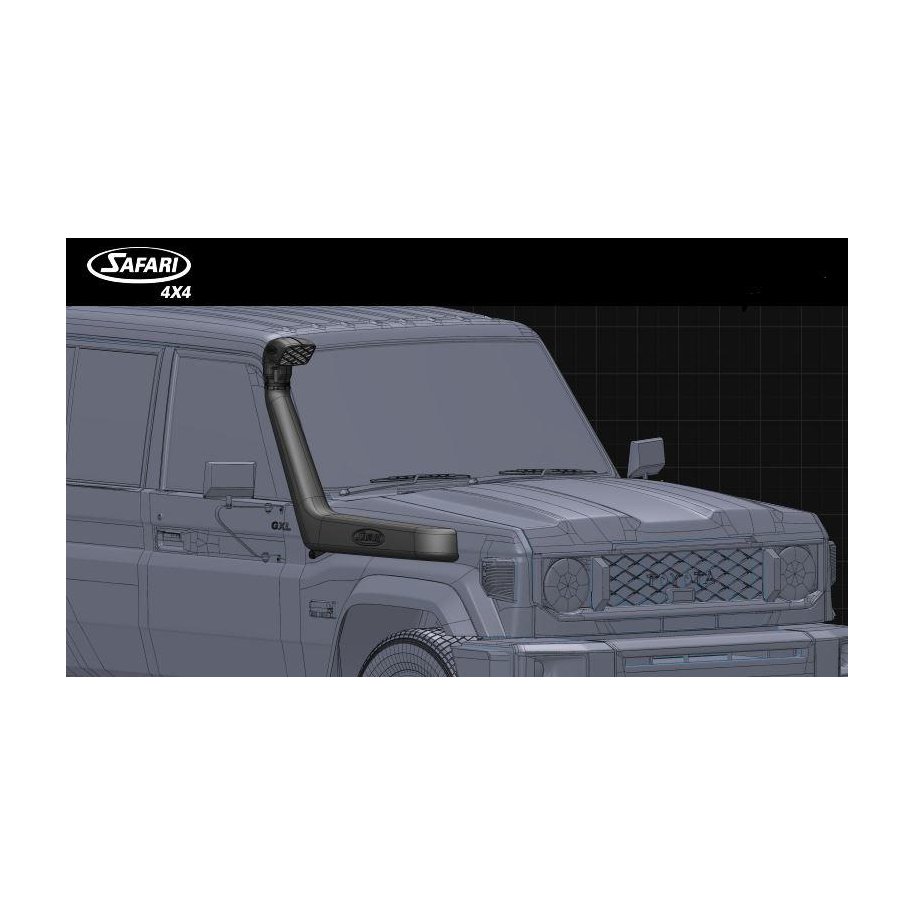 SAFARI V-SPEC SNORKELThe Safari Snorkel is the ultimate protection against water, dust and snow ingress.The Safari Snorkel delivers cool, clean air to your vehicles engine.Utilising Safaris traditional design concepts and incorporating the very latest in scanning and CAD design software, Safaris V-SPEC Snorkels are ready to perform in the most extreme environments. Fully designed and manufactured in Australia, tested and verified on a custom flow bench to ensure the airflow meets or exceeds the factory inlet design. The Safari Snorkel offers the best air intake protection and performance for todays 4wd vehicles