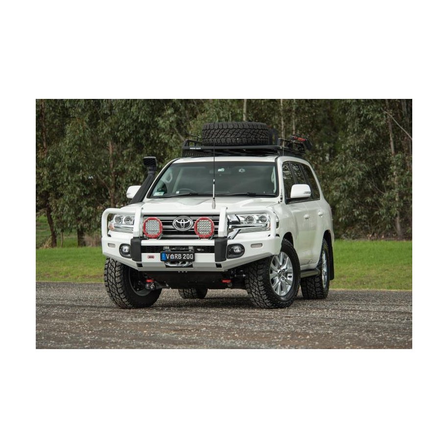 Summit Bull Bar NO. 1 BEST SELLER, AS TOUGH AS IT LOOKS SUITABLE FOR• Modern 4WDs• Owners who want the best• Serious 4WD users• Rough terrain• Around Australia driving• Maximum protection STRONGER, TOUGHER, FEATURE PACKED BAR PROVIDES EXTRA PROTECTIONOPTION TO COLOUR CODE TO SUIT YOUR VEHICLEBAR DESIGNED FOR MODERN DAY 4WDSMOUNTING AND JACKING POINTS TO FIT MULTIPLE ACCESSORIESCOMPATIBLE WITH VEHICLE'S SAFETY FEATURESFOG LIGHTS (SUITS OE FOG LIGHT) PROVIDE WIDE SPREAD ÔÇô EXTRA PROTECTION IN INCLEMENT CONDITIONSBUILT TOUGH TO WITHSTAND THE HARSHEST OF CONDITIONS LET'S TAKE A CLOSER LOOK• Bar design: every Summit bar is specifically designed to complement the shape and features of the vehicle make and model.• Wing design: The ARB renowned multi-fold upswept and tapered wing design for superior strength and maintains an optimum offset approach angle.• Wider edge radius: A 30mm wing and centre section edge radius offers increased strength while complementing modern vehicle design. • Off road jacking points: Allows for the use of an off road jack for effective recovery.• NOT Winch compatible: This ARB Summit bull bar excludes the option of fitting a winch.• Steel uprights: The key to its strength, steel uprights attached to the mounting system provide maximum support and strike protection.• Larger tubing: 60.3mm steel outer hoops (mandrel bent) and central tube provides increased frontal protection and greater visual styling.• Press-formed top pan and cover panel: Stronger centre pan with smooth, continuous edges. A press formed aluminium winch cover panel finishes off the bar for when a winch is not installed.• Mounting system: Specifically engineered to spread impact and winching loads evenly over the vehicle's chassis. This ensures the bull bar functions properly in extreme conditions.• Aerial brackets: Two aerial brackets welded behind the top cross tube.• Driving light provision: Laser cut profiles ready to securely mount driving lights, prevents problems such as excessive movement, a vibrating beam pattern, premature bulb failure and eventual fatiguing of the light bodies.• Split pan design: Enhances the strength of the bar, while providing the radiator and engine with additional airflow. Also facilitates winch access and operation.• Safety first: ARB bars are compatible with vehicle's OE safety systems including airbags, parking sensors and collision avoidance.• Optional fog lights: Perfect for driving in inclement weather, accepts the Original Equipped vehicle (OE) fog lights provide a broad spread of light to illuminate the road ahead.• LED indicators and clearance lights: Fully sealed and water-resistant LEDs provide increased service life.