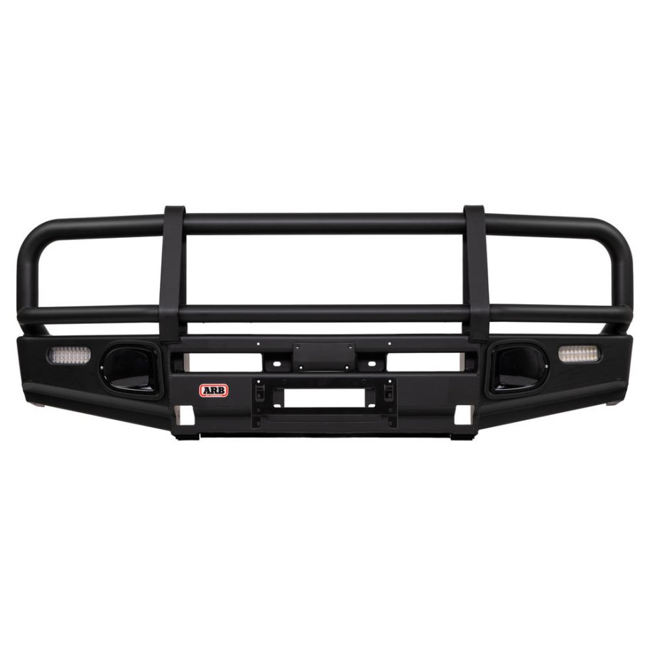 ARB DELUXE BULL BAR ARB's deluxe bull bar selection is our most extensive, with bull bar and winch bar options available for most models.Loaded with features aimed at making remote area travel safer, whilst providing a solid base on which to add other touring essentials such as driving lights, winches and CB antennas, no other bull bar offers the same degree of vehicle integration, protection and functionality.Features you can expect to find throughout the deluxe bull bar range include all steel construction, split pan design to facilitate airflow, fully engineered mounting systems and the ARB pioneered multi-fold upswept and tapered wing design.Product Features: • Recessed indicators: For protection against branches and road debris.• Recessed Fog light insert: For protection against branches and road debris, fog light is an optional extra.• Steel uprights: The key to its strength, steel uprights attached to the mounting system provide maximum support and strike protection.• Driving light provision: Securely mounting driving lights prevents problems such as excessive movement, a vibrating beam pattern, premature bulb failure and eventual fatiguing of the light bodies.• Aerial brackets: The vast majority of ARB Deluxe bull bars incorporate two aerial brackets welded behind the top cross tube. Custom-fit, clamp-on brackets are also available for additional antenna mounting.• Split pan design: Enhances the strength of the bar, while providing the radiator and engine with increased airflow.• Wing design: The ARB design provides greater strength and maintains an optimum approach angle.• Off road jacking points: Allows for the use of an off road jack for effective recovery.• Mounting system: Specifically engineered to spread impact and winching loads evenly over the vehicle's chassis. This ensures the bull bar functions properly in extreme conditions.