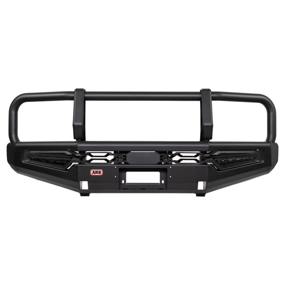 SUMMIT MKII BARARB are pleased to announce the release of our industry-leading Summit MKII Bull Bar for the king of off-road vehicles - the new 2024 Toyota LandCruiser 70 Series. Providing unrivalled protection and an array of features, the Summit MKII takes the unforgettable front end of this vehicle to another level. Available for the MY24 Toyota LandCruiser 70 Series Dual-cab, 76 Series Wagon and 78 Series Troop Carrier and has been designed to be fully integrated with Toyota's Intelligent safety technology better known as Safety sense. The state-of-the-art Summit MKII Bar takes key components of its flagship namesake and kicks It up a notch with an ultra-modern design that's constructed to turn heads. Summit MKII has eliminated front buffers and now has robot welds on the front face of the bar to highlight ARB's excellence in sheet metal fabrication. Fog light design has been significantly updated to include a plug and play fog light / sequential indicator / clearance light and Daytime Running Light within one complete unit for an integrated approach to incorporate these requirements on modern vehicles.FEATURES:Vehicle specific design suitable for the Toyota LandCruiser 70 Series (dual cab, 76 wagon, 78 troop Carrier)Registered design of styling componentsDurable steel construction for maximum protectionIncorporates ARB's renowned multi fold upswept and tapered wing design for optimum strength and approach angle30mm radius on wings and centre section60.3mm outer frames and centre cross tubeEngineered, air bags compatible mounting system secures to the chassis via high tensile boltsSplit pan design for maximum strength and airflowNo under panels provided. Radiator protection panel P/N 3512170Press formed top pan and aluminium (powder coated matt black) winch cover panelTwin ARB Jack or Hi-Lift jacking points located on lower panTwo aerial brackets located on the centre frameOptional winch fit kit 3512150 and winch hawse spacer kit 3500605Will accommodate Warn, Bushranger, Smittybilt low mount electric winches up to 12,000lbsProvision to accommodate ARB Intensity, Intensity IQ and Solis LED's and a range of Bushranger lightsIncludes ARB 4 in one light cluster which includes LED fog light, LED Daytime Running Light and LED indicators and clearance lightsCompatible with original equipment TSS safety featuresBar adds approximately 45mm to the overall length of the vehicleApproximate weight of the bar and fitting kit is 62kgsApproximately 27.5kg is removed from the vehicle for fitment of the barMetaprep primer for additional corrosion resistanceFinished in matt black powder coat