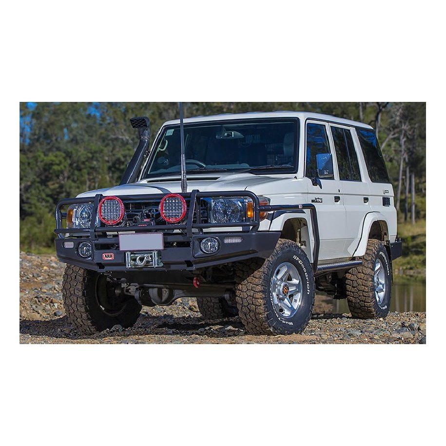 ARB DELUXE BULL BAR ARB's deluxe bull bar selection is our most extensive, with bull bar and winch bar options available for most models.Loaded with features aimed at making remote area travel safer, whilst providing a solid base on which to add other touring essentials such as driving lights, winches and CB antennas, no other bull bar offers the same degree of vehicle integration, protection and functionality.Features you can expect to find throughout the deluxe bull bar range include all steel construction, split pan design to facilitate airflow, fully engineered mounting systems and the ARB pioneered multi-fold upswept and tapered wing design.Product Features: • Recessed indicators: For protection against branches and road