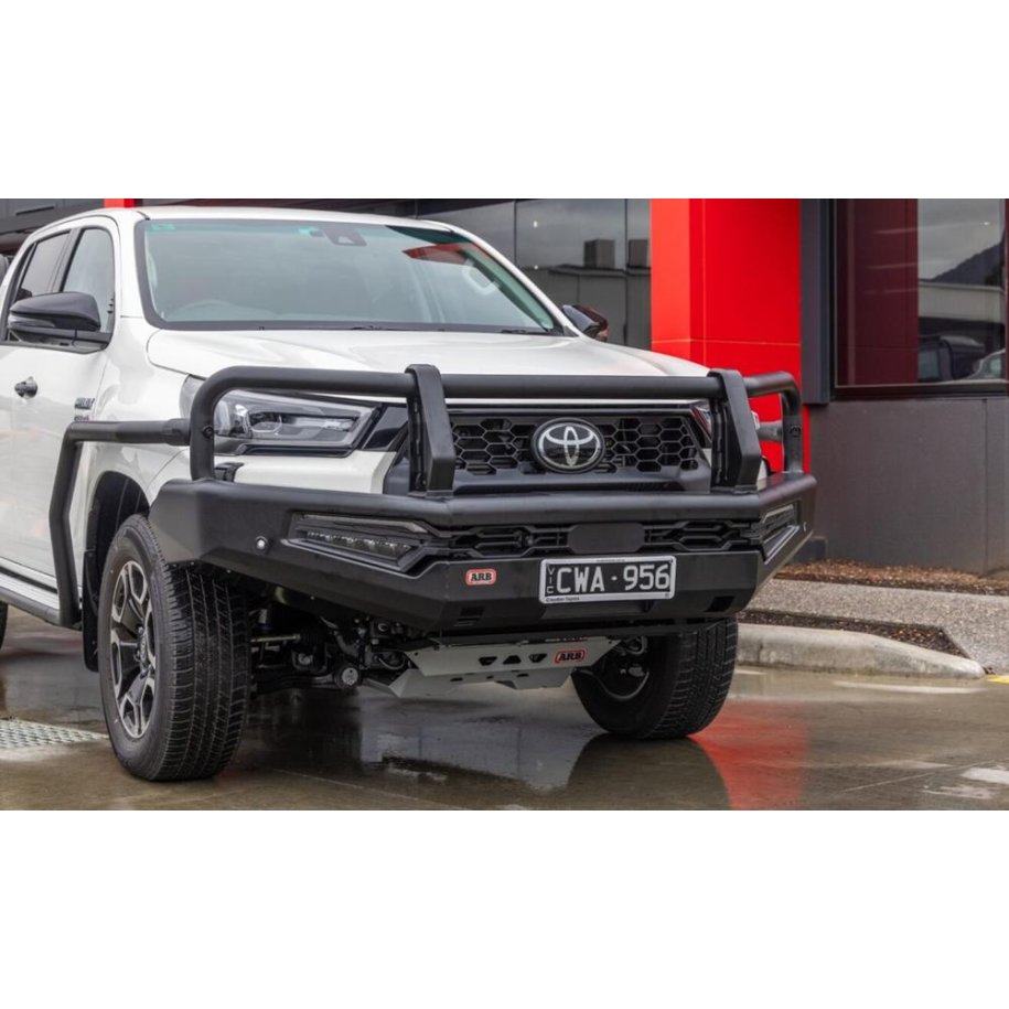 ARB SUMMIT BAR MKIIThe ARB Summit Bar MKII is now released for the ever-popular Toyota Hilux and has been designed to be fully integrated with Toyotas Intelligent safety technology better known as Safety sense. Panoramic View Monitor is support by a camera relocation kit and is an available option for variants that specify the 360-degree view front facing camera. The state-of -the-art Summit Bar MKII takes key components of Its flagship namesake and kicks It up a notch with an ultra-modern design that's constructed to turn heads.  Hilux Bars have just gotten better!   Summit MKII has eliminated front buffers and now has robot welds on the front face of the bar to highlight ARB's excellence in sheet metal fabrication.