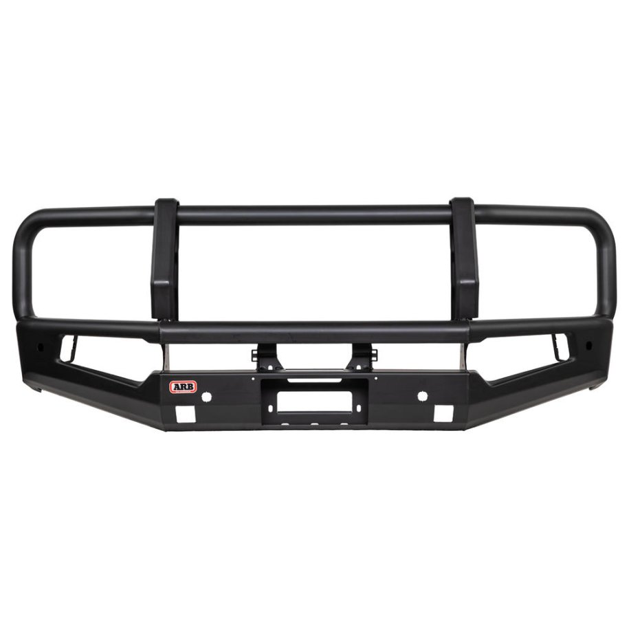 ARB SUMMIT BAR MKIIDesign and DevelopmentDevelopment began with a number of primary areas of the existing Summit Bar platform:• Buffers• Fog light housing• Fitting timeSummit MKII has eliminated front buffers and now has robot welds on the front face of the bar to highlight ARB's excellence in sheet metal fabrication. Fog light design has been significantly updated to include a plug and play indicator / clearance light / Daytime Running Light and fog light within one complete unit for an integrated approach to incorporate these requirements on modern vehicles.FEATURES:• Vehicle specific design• Registered design of styling and design components.• Durable steel construction for maximum protection.• Incorporates ARB's renowned multi fold upswept and tapered wing design for optimum strength and approachangle.• 30mm radius on wings and centre section.• 60.3mm outer frames and centre cross tube.• Engineered, air bag compatible mounting system secures to the chassis via high tensile bolts.• Split pan design for maximum strength and airflow.• Extensive protection panels on centre and either side.• Pressed form top pan and aluminium (powder coated matt black) winch cover panel.• Twin ARB Jack or Hi-Lift jack points located in the lower pan• Two aerial brackets located on the outer frames.• Will accommodate Warn, Magnum, Bushranger, Smittybilt low mount model electric winches up to 10,000lb.• Provision to accommodate ARB Intensity and Solis LED's and a range of Bushranger lights.• Includes ARB LED Fog light, LED Daytime Running Light and LED indicators and clearance lights• Bar adds approximately 174mm to the overall length of the vehicle.• Approximate weight of the bar, chassis mounts and fitting kit is 79kg. Approximately 17kg is removed from thevehicle for fitment of the bar.• Metaprep primer for additional corrosion resistance.• Finished in matt black powder coat with the option to colour code to vehicle colour.