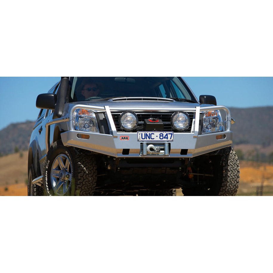 Commercial Bull BarTHE AUSSIE WORKHORSE SUITABLE FOR• Onsite work• Fleet and government vehicles• Tradies• New and older model 4WDs• Budget-conscious owners PRODUCT SPECIFICATION • Recessed indicators: For protection against branches and road debris.• Steel tube: 76.1mm steel centre frame tube and 60.3mm outer frame tube for added strength.• Aerial brackets: Some ARB Commercial bull bars incorporate aerial brackets welded behind the top cross tube.• Off road jacking points: Some Commercial bull bars feature off road jacking points, allowing a jack to be attached directly to the bar.