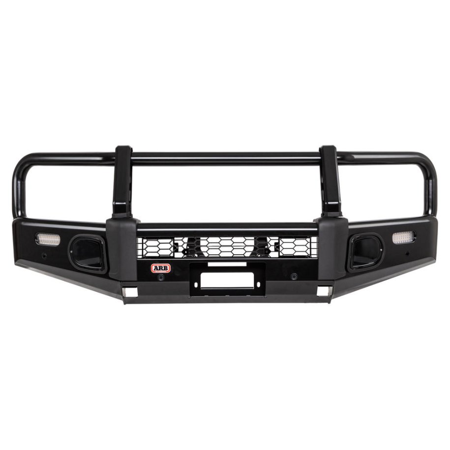 Summit Bull Bar NO. 1 BEST SELLER, AS TOUGH AS IT LOOKS SUITABLE FOR• Modern 4WDs• Owners who want the best• Serious 4WD users• Rough terrain• Around Australia driving• Maximum protection STRONGER, TOUGHER, FEATURE PACKED BAR PROVIDES EXTRA PROTECTIONOPTION TO COLOUR CODE TO SUIT YOUR VEHICLEBAR DESIGNED FOR MODERN DAY 4WDSMOUNTING AND JACKING POINTS TO FIT MULTIPLE ACCESSORIESCOMPATIBLE WITH VEHICLE'S SAFETY FEATURESFOG LIGHTS (OPTIONAL EXTRA) PROVIDE WIDE SPREAD ÔÇô EXTRA PROTECTION IN INCLEMENT CONDITIONSEASY, MORE FLEXIBLE WINCH ACCESSBUILT TOUGH TO WITHSTAND THE HARSHEST OF CONDITIONS LET'S TAKE A CLOSER LOOK• Bar design: every Summit bar is specifically designed to complement the shape and features of the vehicle make and model.• Wing design: The ARB renowned multi-fold upswept and tapered wing design for superior strength and maintains an optimum offset approach angle.• Wider edge radius: A 30mm wing and centre section edge radius offers increased strength while complementing modern vehicle design. • Off road jacking points: Allows for the use of an off road jack for effective recovery.• Winch compatibility: The ARB Summit bull bar has the option of fitting a winch and is designed and tested to endure the rigours of maximum recovery stress.• Steel uprights: The key to its strength, steel uprights attached to the mounting system provide maximum support and strike protection.• Larger tubing: 60.3mm steel outer hoops (mandrel bent) and central tube provides increased frontal protection and greater visual styling.• Press-formed top pan and cover panel: Stronger centre pan with smooth, continuous edges. A press formed aluminium winch cover panel finishes off the bar for when a winch is not installed.• Mounting system: Specifically engineered to spread impact and winching loads evenly over the vehicle's chassis. This ensures the bull bar functions properly in extreme conditions.• Aerial brackets: Two aerial brackets welded behind the top cross tube.• Driving light provision: Laser cut profiles ready to securely mount driving lights, prevents problems such as excessive movement, a vibrating beam pattern, premature bulb failure and eventual fatiguing of the light bodies.• Split pan design: Enhances the strength of the bar, while providing the radiator and engine with additional airflow. Also facilitates winch access and operation.• Safety first: ARB bars are compatible with vehicle's OE safety systems including airbags, parking sensors and collision avoidance.• Optional fog lights: Perfect for driving in inclement weather, these fog lights provide a broad spread of light to illuminate the road ahead.• LED indicators and clearance lights: Fully sealed and water-resistant LEDs provide increased service life.