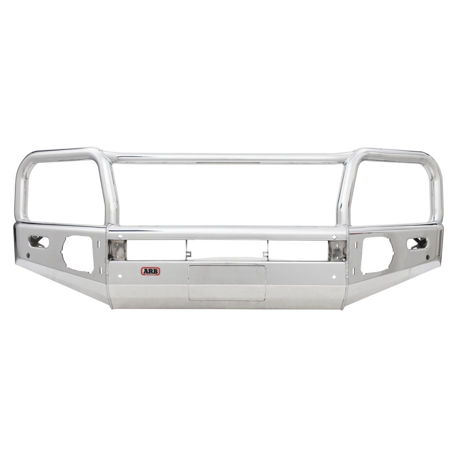 ALLOY BULL BAR SUPER STYLISH, SUPER FUNCTIONAL, SUPER STRONG Strong lightweight alloy constructionSecure mounting points for aerials and driving lightsLED indicators and clearance lightsRecessed fog lightsAir bag compatibleStrong mounting systemWinch compatible   PROVIDES ANOTHER CHOICE OF FRONTAL PROTECTIONFOR OWNERS WHO APPRECIATE STYLEDESIGN INTEGRATES FLAWLESSLY WITH VEHICLELIGHT AND DURABLE  FEATURES:• Wing design: The ARB design provides greater strength and maintains an optimum offset approach angle.• Winch compatible: Optional extra separate winch cradle to suit a range of winches.• Larger tubing: 60mm outer