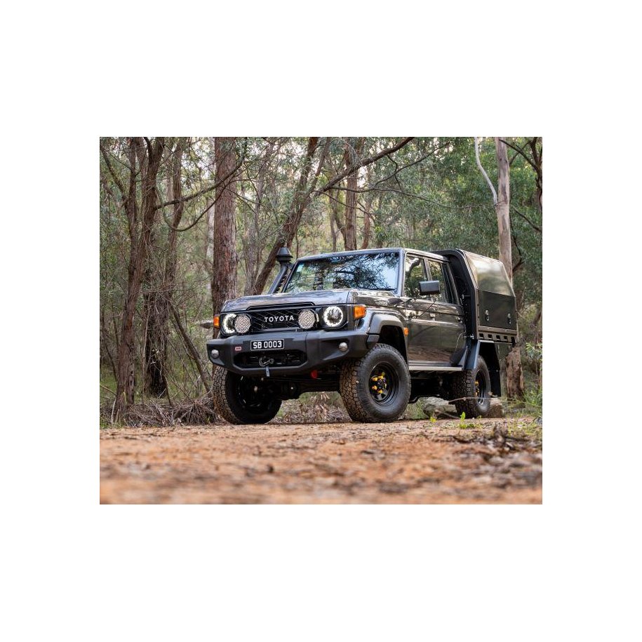 STEALTHBARA lighter, streamline bull bar, made to protect your Toyota Landcruiser 70 series. Designed, engineered and manufactured in Australia, the StealthBar was developed strategically to fit all Toyota 70 series models and variants, including the new Toyota Safety Sense models. A full bumper replacement, the bar sports a tough low profile look, that seamlessly fits the retro and cruiser aesthetic, while providing unparalleled safety. Designed with a unique hollow construction and built from a durable, corrosion and rust resistant UV stabilised polymer, StealthBars provide superior frontal protection for your vehicle with the ability to absorb on impact and then return to shape in the case of an incident. Thanks to their lightweight properties, StealthBars assist with minimising the vehicle GVM, improving fuel economy and reducing tyre and brake wear compared to alternative bullbars.Accommodating the fitment of a range of aftermarket safety and 4X4 accessories, the StealthBar is also compatible with variouswinches up to 12,000lbs. The StealthBar is a streamline platform, perfect for mounting your 4+?4, safety or communications accessories, for work or play. Suitable for all workmate, GX and GXL Models, the SmartBar is engineered to be the lightestbull bar available; while offering superior protection and safety for vehicle owners and importantly, pedestrians.StealthBar's are the only bull bar approved for use in EuropeSafety Features:Safety at the forefront of design. StealthBars go above and beyond the Australian Safety Standards, to ensure the safety of the vehicle, occupants and pedestrians. Undergoing exhaustive testing, which proves the superiority of our impact resistant technology allowing us to confidently stand behind the quality and safety of our bull barsChassis Mounts:The chassis mount design comprises of a bracket construction which allows for two axis of adjustability, to achieve a solid and perfect fit every time. All brackets have been tested and comply with Vehicle Air Bag, and Australian Safety Standards.Pedestrian Safety:ARB polymer bull bars have been tested to Australia's Pedestrian Safety ratings and proven to be less likely to cause serious injury to pedestrians than other alternatives. This is due to the hollow construction which allows the bar to absorb most of the impact along with the unique and specifically designed co-polymer material.Intergrated Sensors:The Toyota 70 Series StealthBar is designed to be compatible with Toyota Safety Sense radars.Toyota Safety Sense features include (but not limited to):- Stability and traction control- Pre-collision system and radar- Airbag sensorsSafety at the forefront of design. StealthBars go above and beyond the Australian Safety Standards, to ensure the safety of the vehicle, occupants and pedestrians. Undergoing exhaustive testing, which proves the superiority of our impact resistant technology allowing us to confidently stand behind the quality and safety of our bull bars.FEATURES:Safety Sense CompatibilityAccessory MountingCodan Compatible (optional)Aerial and Sand Flag MountingUnder Vehicle Recovery Points (optional)Winch CompatibilityFog Light & All-in-1 Lights (optional)Under Vehicle Guard Kit (optional)OE Tow Point Compatible