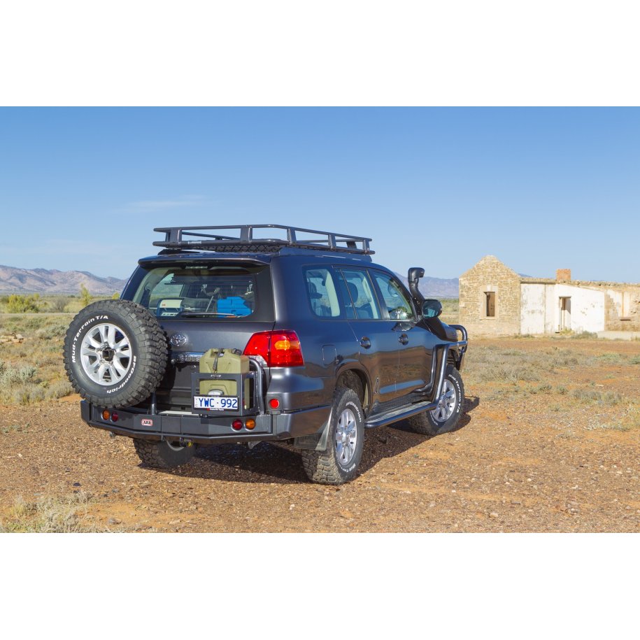 ARB REAR BAR AND WHEEL CARRIERAn ARB rear bar provides protection to the vehicle's vulnerable rear panels whilst incorporating a heavy duty towing system or integrating with the factory towing system (model dependent). Giving owners the ability to relocate the spare tyre from either a rear door mount or from under the vehicle, the wheel carriers can be adjusted to suit different rim offsets and sizes along with increased tyre diameters. Removing the spare wheel from under the vehicle can also allow fitment of long range fuel tanks or additional fuel or water can be carried in the optional Jerry can holder.Customisable to suit individual needs, the rear bar can be optioned with left or right hand opening swing away wheel carriers & jerry can holders for single, twin or combination configurations. Additionally, wheel carriers can be fitted with optional camp lights, reversing lights, HF antenna mount and Hi-Lift jack holders.Note: Not suitable for barn door models. Image is for illustrative purposes.FEATURES• Wheel/single jerry can carriers can be optioned on either side of the rear bar on most vehicles• A single carrier can be fitted, or the rear bar can be installed without any carriers at all. Neat insert panels are used in this instance• Twin 33ÔÇ? or a single 35ÔÇ? tyre can be accommodated on most vehicles• Carriers are mounted via dual shear pivots for maximum strength• Spare tyre is secured to the stud plate with a lock nut with the provision to fit a padlock to secure the stud plate to the carrier• Multi fit spare wheel stud system provides flexibility for alternate rim selection• Wing sections can be removed and replaced if they sustain damage• Incorporates heavy duty towing system, or integration with original equipment towing system on some models• Dual, laminated towing points and Hi-Lift jacking points• Extruded alloy step section• Supplied in a durable powder coat finish with optional colour coding available• Provision to mount an optional HF aerial bracket, camp light, reverse light or Hi-Lift jack mount on most vehicles
