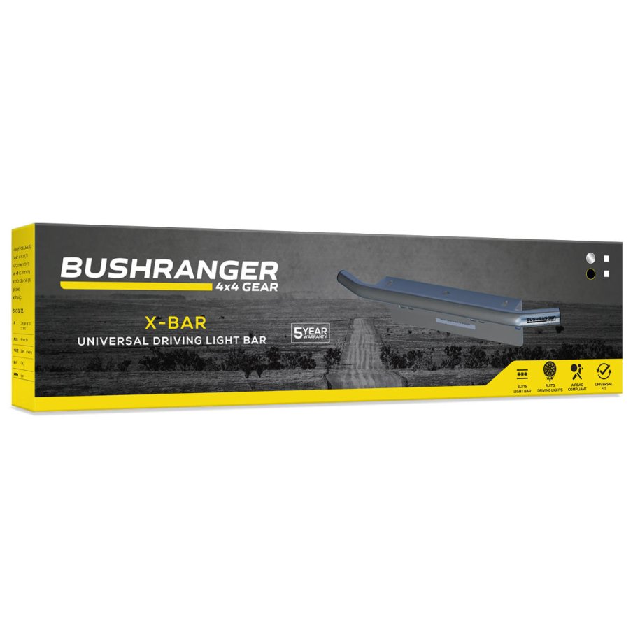 Bushranger-« X-Bar, Number Plate Light Mounting Bar suitable for 4+ù4, SUV, passenger vehicles as a universal light installation solution. Fixes to the vehicle by using the existing licence plate mounting holes to fit, for a sturdy mounting platform. Available in black or chrome.