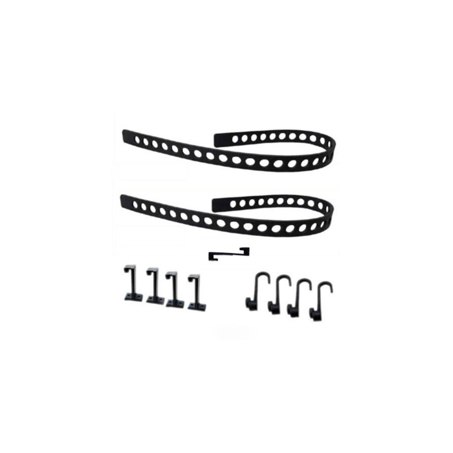 QUICK FIST RUBBER TIE DOWN BELT PACKSignificantly Stronger, Wider & More Weather Resistant than Bungee Cord! 38\".L. x 1.5\" W. X .25\" D. (965x38x6mm) Belt that Secures Equipment.• Not affected by hot or cold climates• UV resistant• Two belts (or more) can be \"buttoned\" together to almost double its length with the connector included in every package.• Two ways to install (both are included): With Hooks for Existing Mounting Points or With Bolt-on Mounting Posts.• For use on work & emergency vehicles, off road & military trucks, ATVs and boats.