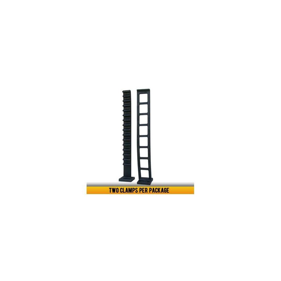 QUICK FIST XL CLAMP \tTwo 14'' (356mm) separate straps hold round objects up to 15ÔÇ? (381mm) in diameter.\tHolds equipment measuring up to 28ÔÇ? (711mm) in linear distance.\tEach clamp supports a safe working load of 150lbs. (68 kilos) with a break-strength of 300lbs. (176 kilos).\tTwo clamps support 300lbs with a break-strength of 600lbs (272 kilos).\tEach half of the clamp mounts with four #10 screws or bolts.\tMounting Area: 2ÔÇ? x 2ÔÇ? (51mm x 51mm)Two Clamp Sets Per Package