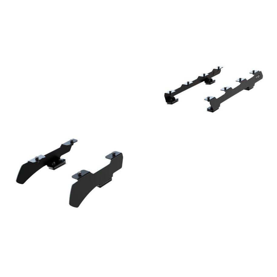 Comes in a set of (4) four rails: left/right side front foot rails and left/right side rear foot rails Fits to the Land Rover Defender 110 factory rails. Foot rails follow the contours of the vehicle's roof line providing a sturdy base to fit the Front Runner Slimline II Roof Rack or Load Bars. An opening on the Foot Rails allows access to a Front Runner under rack mount table (1 smaller camp size table). Made of steel and sealed with the same durable, weather-resistant powder coating as Front Runner racks. Installation hardware and fitting instructions included.