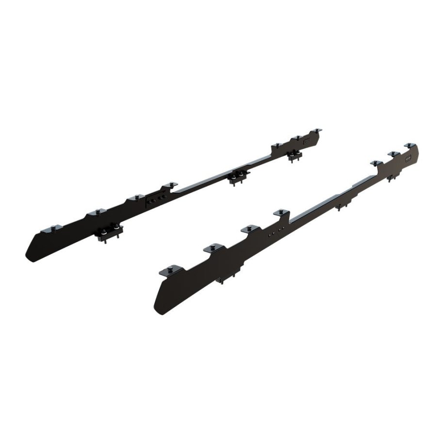 Comes in a set of (4) four, 1 pair of front foot rails and 1 pair of rear foot rails (left and right-hand side per pair). Foot rails allow for the mounting of under-rack storage slides as well as a table (Storage orientation and table size will depend on the length and width of the Rack). No drilling or track is required. These Foot Rails contain 1 opening to access Front Runner under rack mount tables (1 smaller (TBRA018 or 1 larger TBRA017).