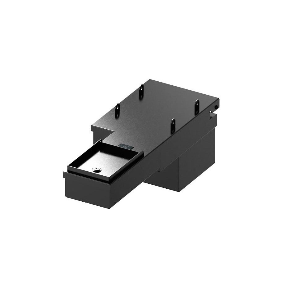 The safe is bolted to the body of the vehicle and the original centre console reinstalled to the top of the safe. Installs easily using supplied installation kit and installation guide. This robust safe is manufactured with 2mm thick mild steel and a tamper proof cam lock. Powder coated black. Carpet lined. Note: Not suitable for Left-hand drive vehicles.