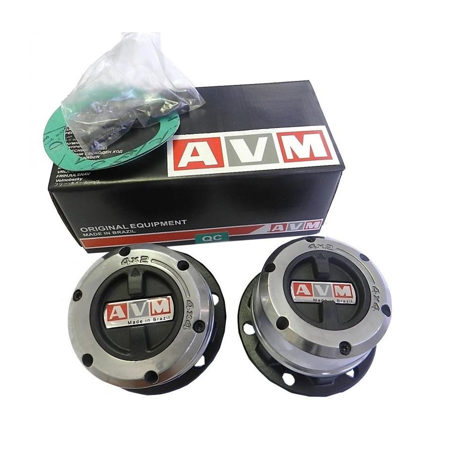 AVM FREE WHEELING HUBSAVM free wheeling hubs are a quality, tough and dependable replacement for factory fitted hubs. Used to connect or disconnect the front axle assembly on part-time 4WD models, they can also be fitted to early model 4WDs that have fixed hubs to stop unnecessary differential rotation and resulting wear.The outer end of each front axle is a splined section over which the inner hub fits. Around the outside of this is an outer hub which is connected to the wheel. A clutch separates the two. This clutch can be engaged by oblique grooves cut inside the free wheeling hub control knob that is mounted on the outside.Turning the knob from ÔÇ?4+?2' to ÔÇ?4+?4' moves the clutch, locking the inner and outer hubs together.